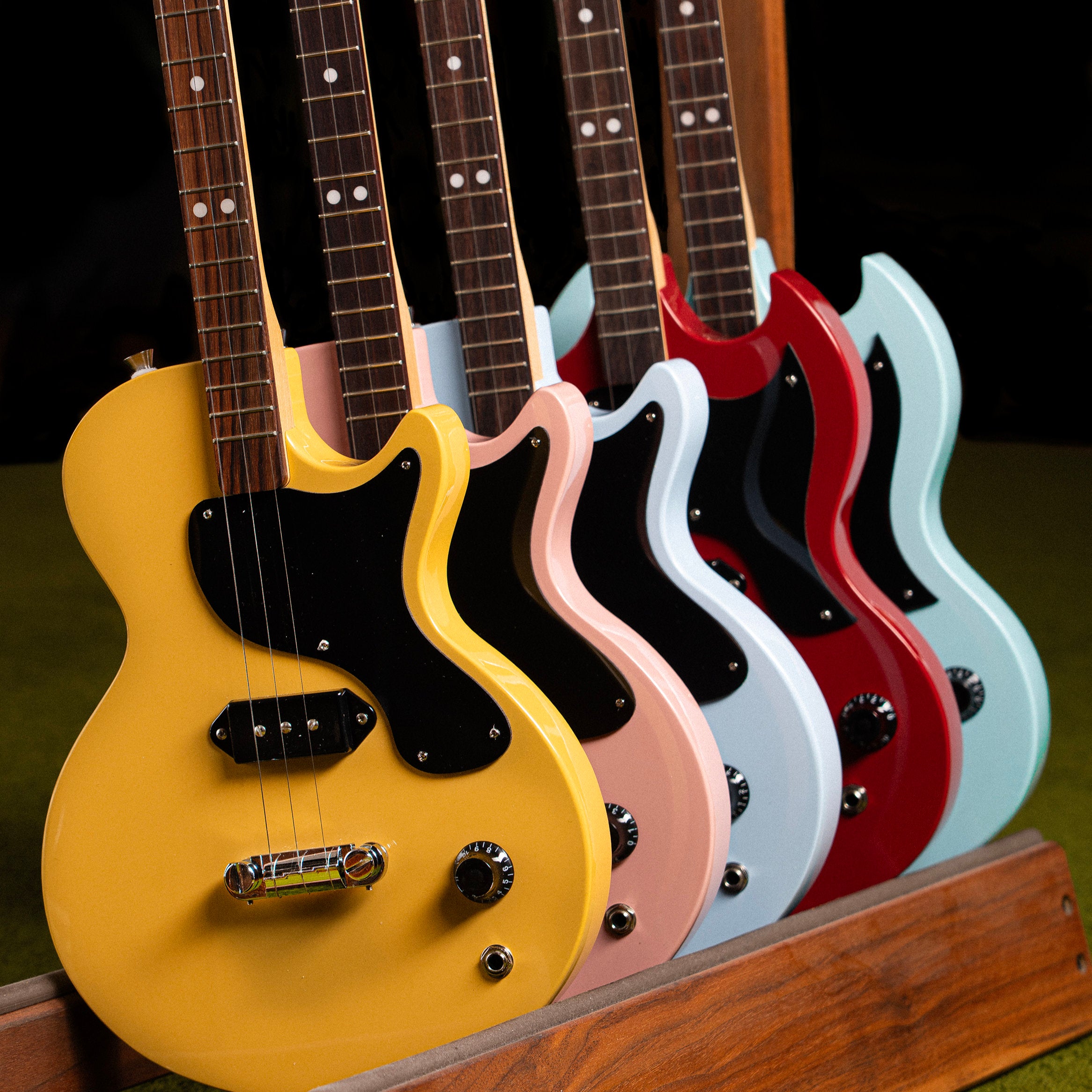 A tribute to two of the most iconic guitar designs of all time — the SG and the Les Paul — reimagined in short-scale, 3-string versions for kids, beginners, and anyone ready to rock.