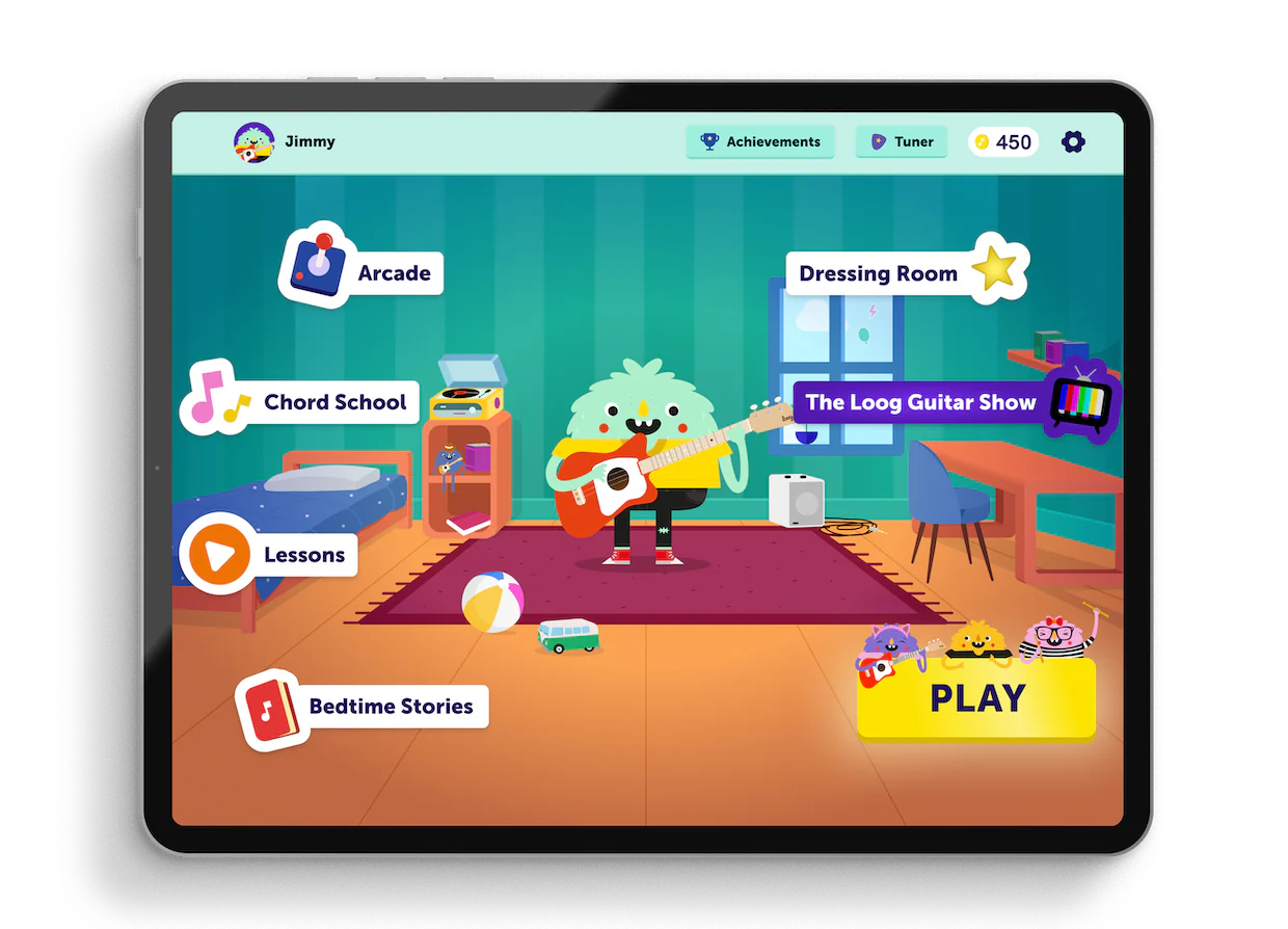 Games, video lessons, a learn-to-play songbook with 200 songs by The Beatles, Taylor Swift, Bruno Mars and more, and even an interactive TV show. The all-new Loog Guitar app is designed to get kids playing, learning and falling in love with music, all year long.
